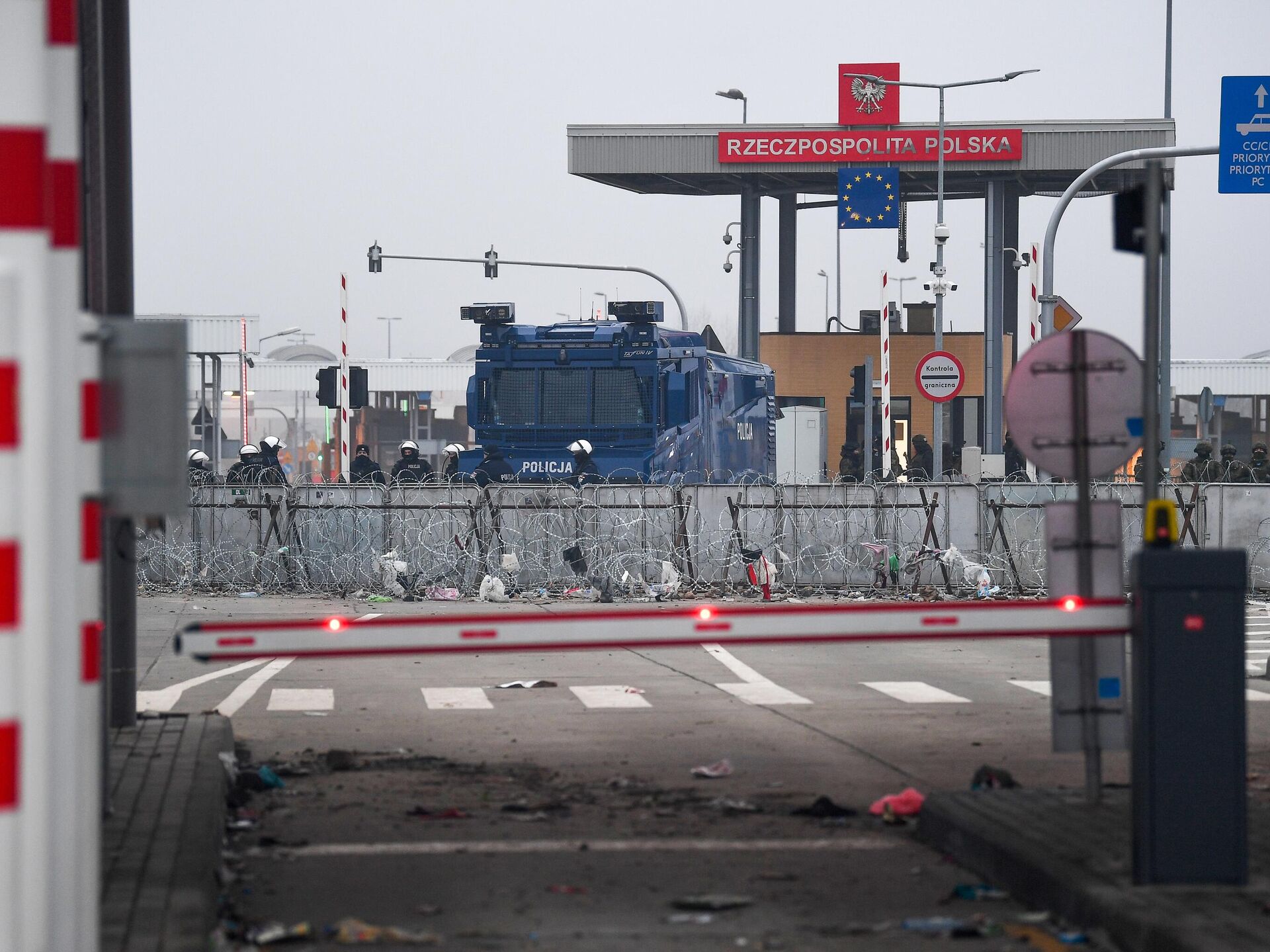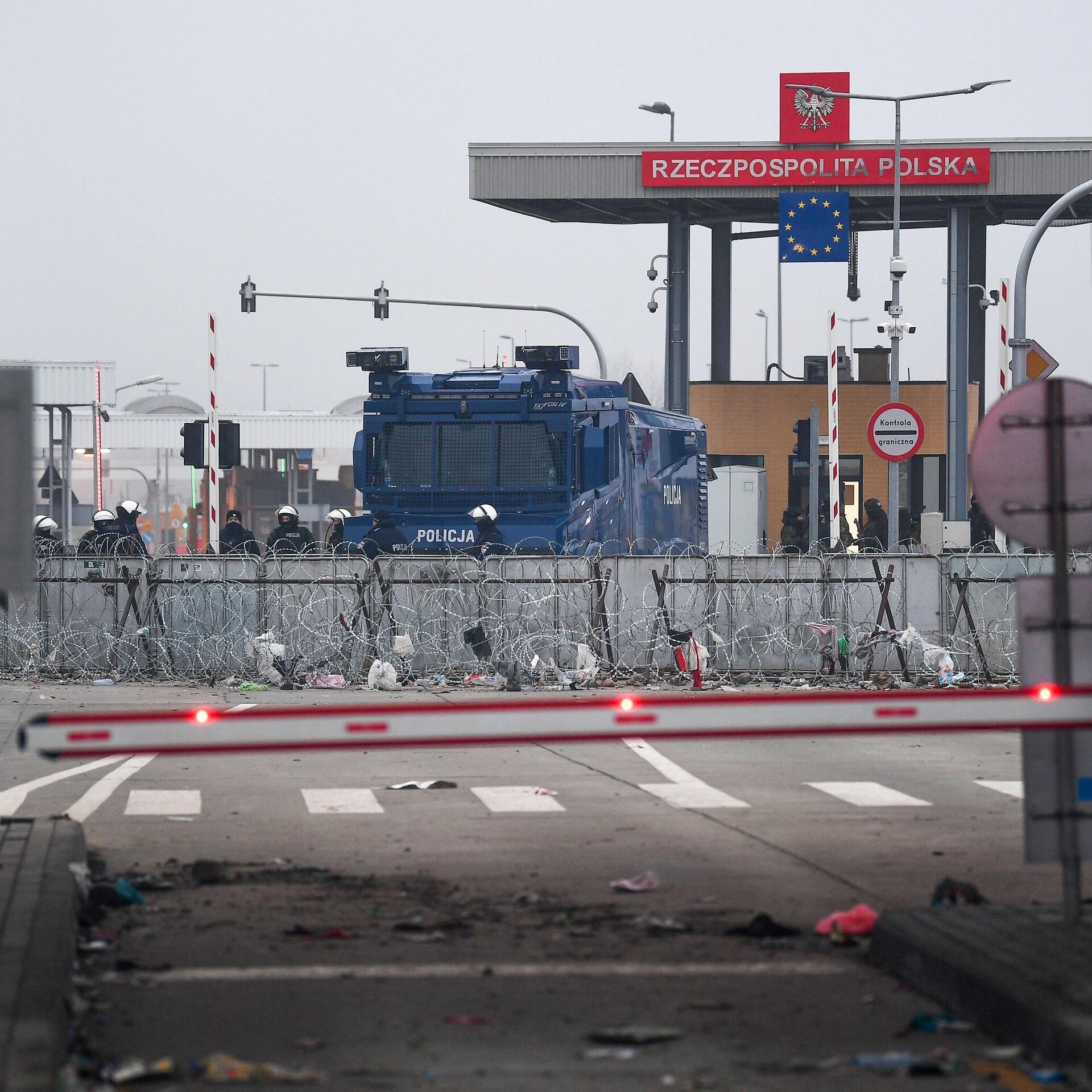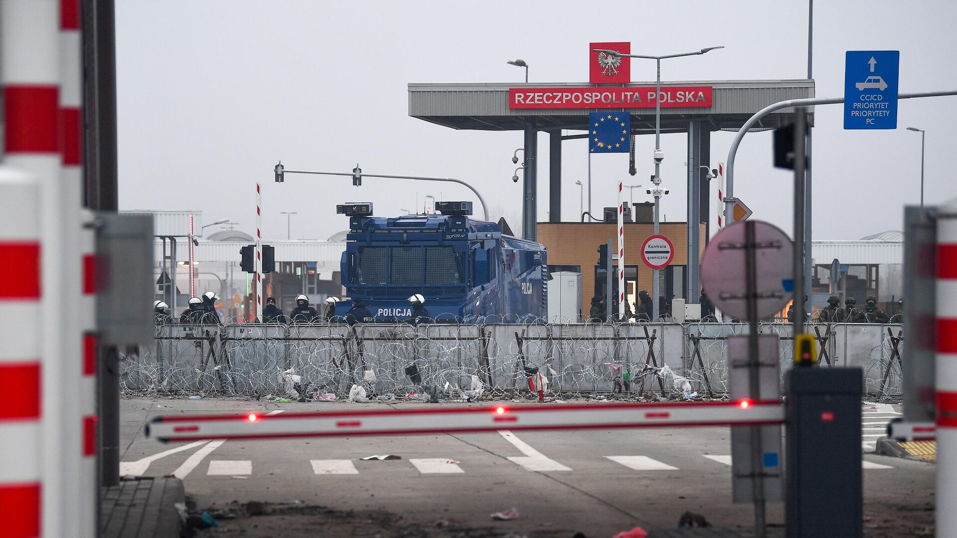 © Sputnik / Виктор Толочко | Перейти в медиабанкПольские полицейские и военнослужащие на пункте пропуска "Кузница-Брузги" на польско-белорусской границе