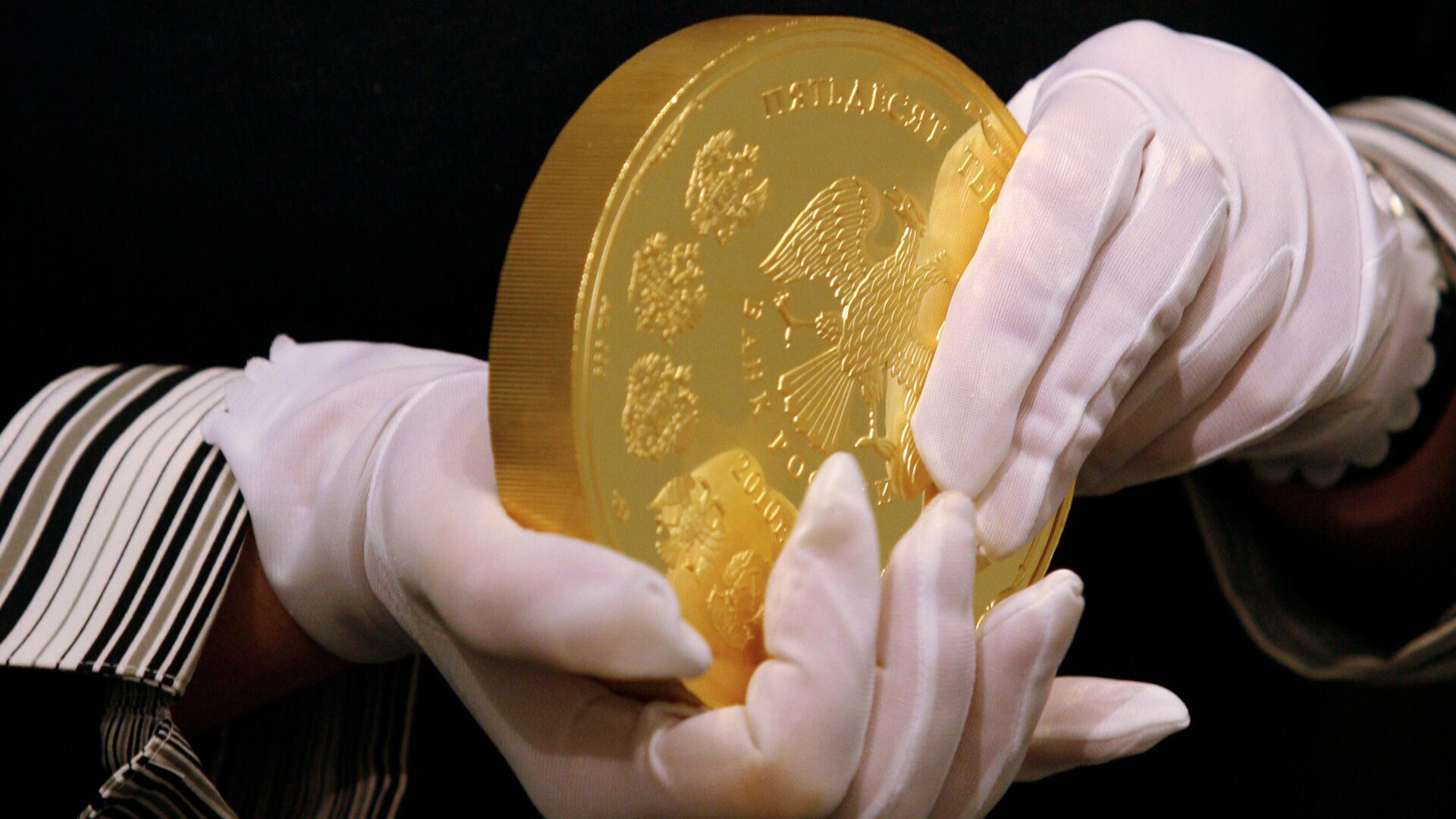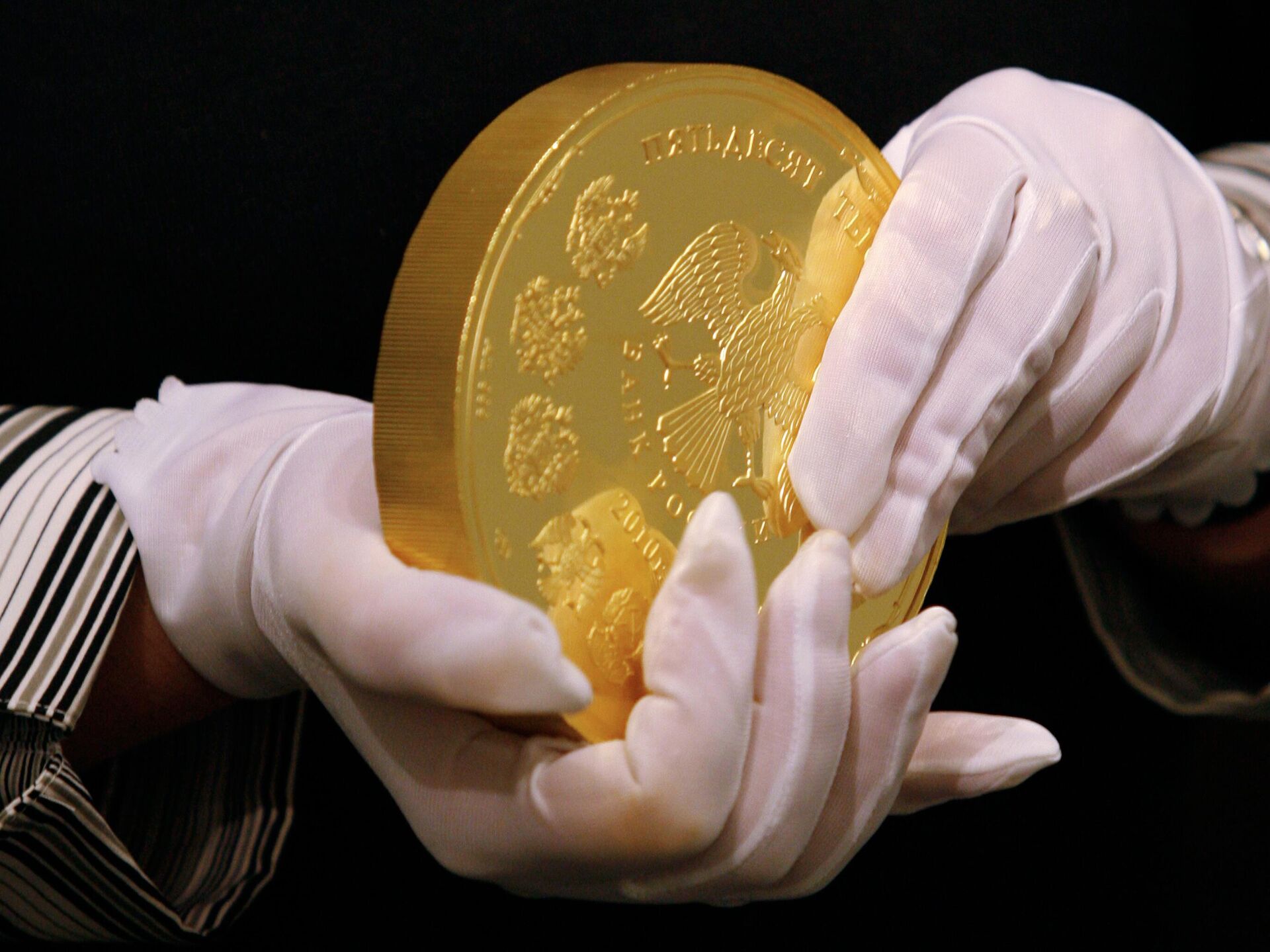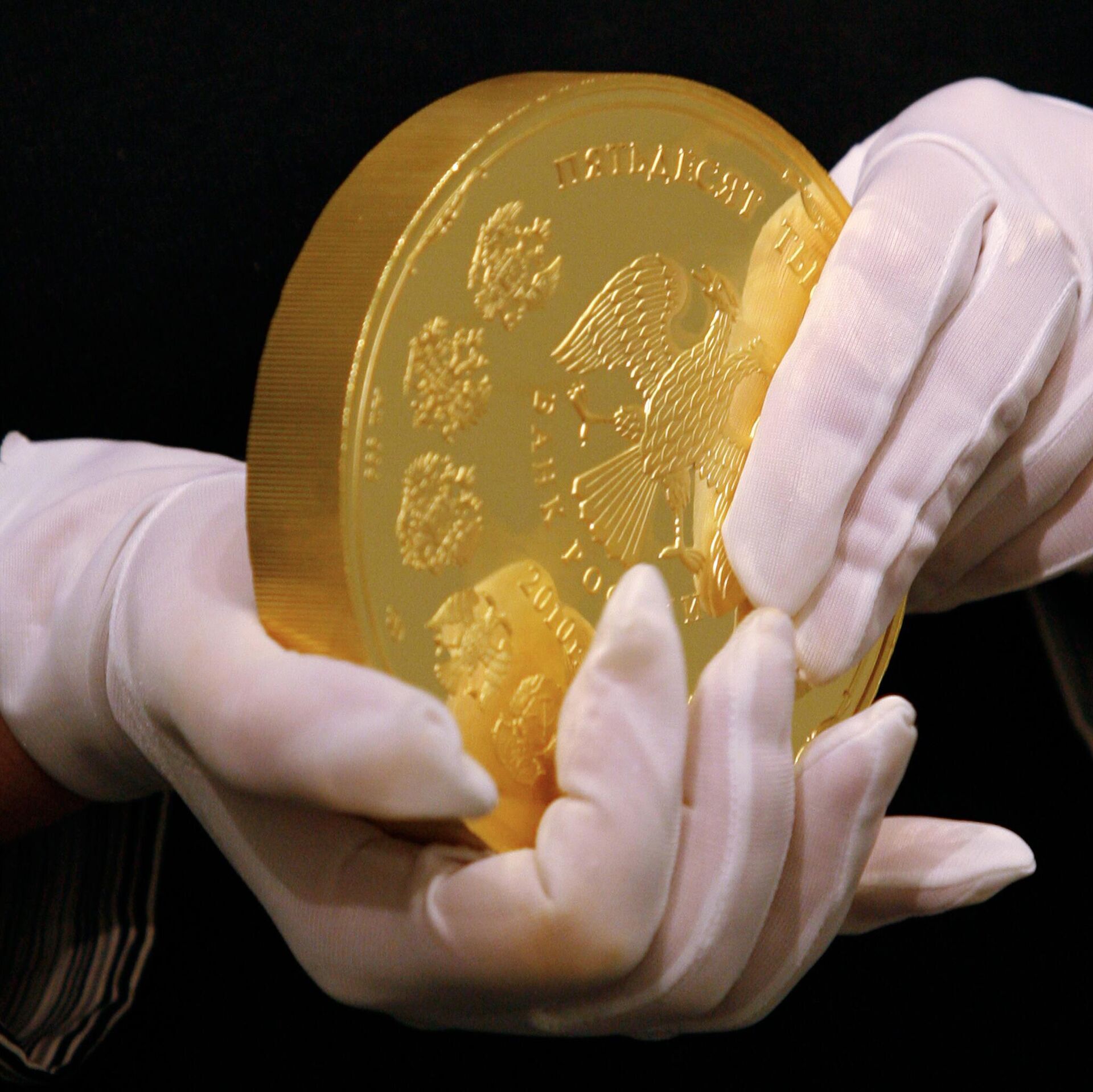 © РИА Новости / Максим Богодвид | Перейти в медиабанкЗолотая монета номиналом 50 тысяч рублей