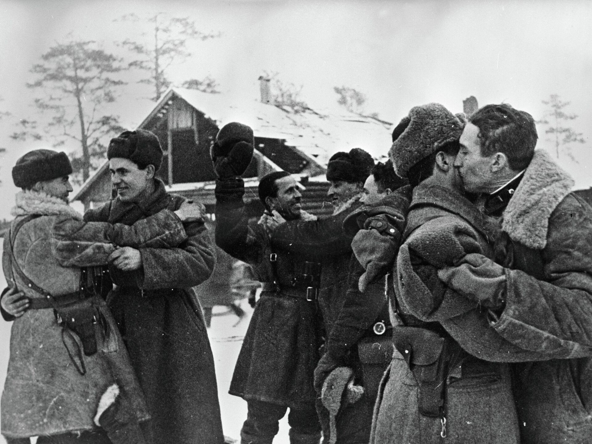 Встреча бойцов двух фронтов во время блокады Ленинграда - РИА Новости, 1920, 27.01.2026