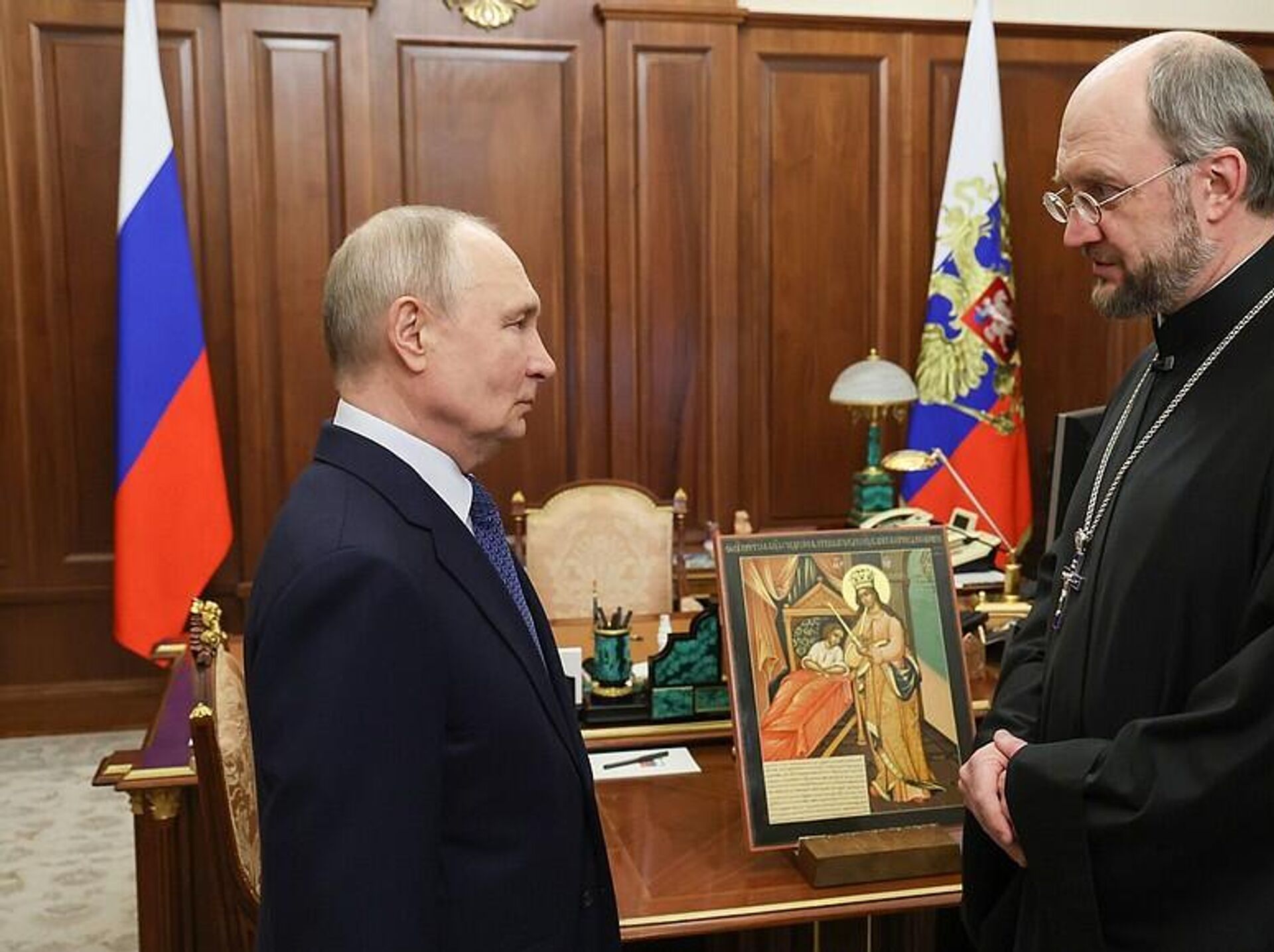 Протоирей Ткаченко подарил Путину икону Божией Матери "Целительница"
