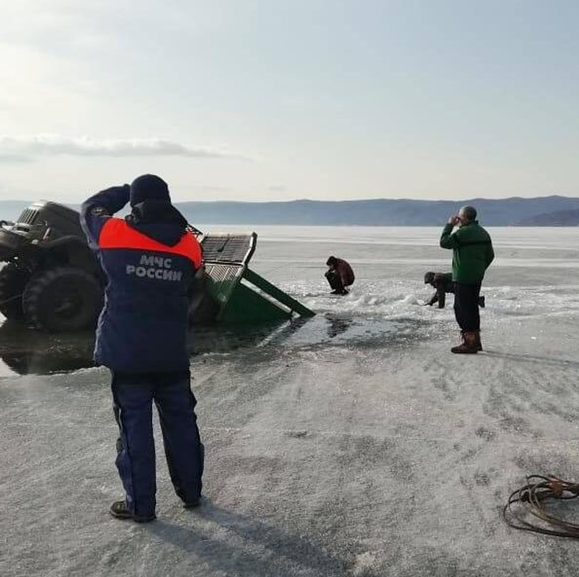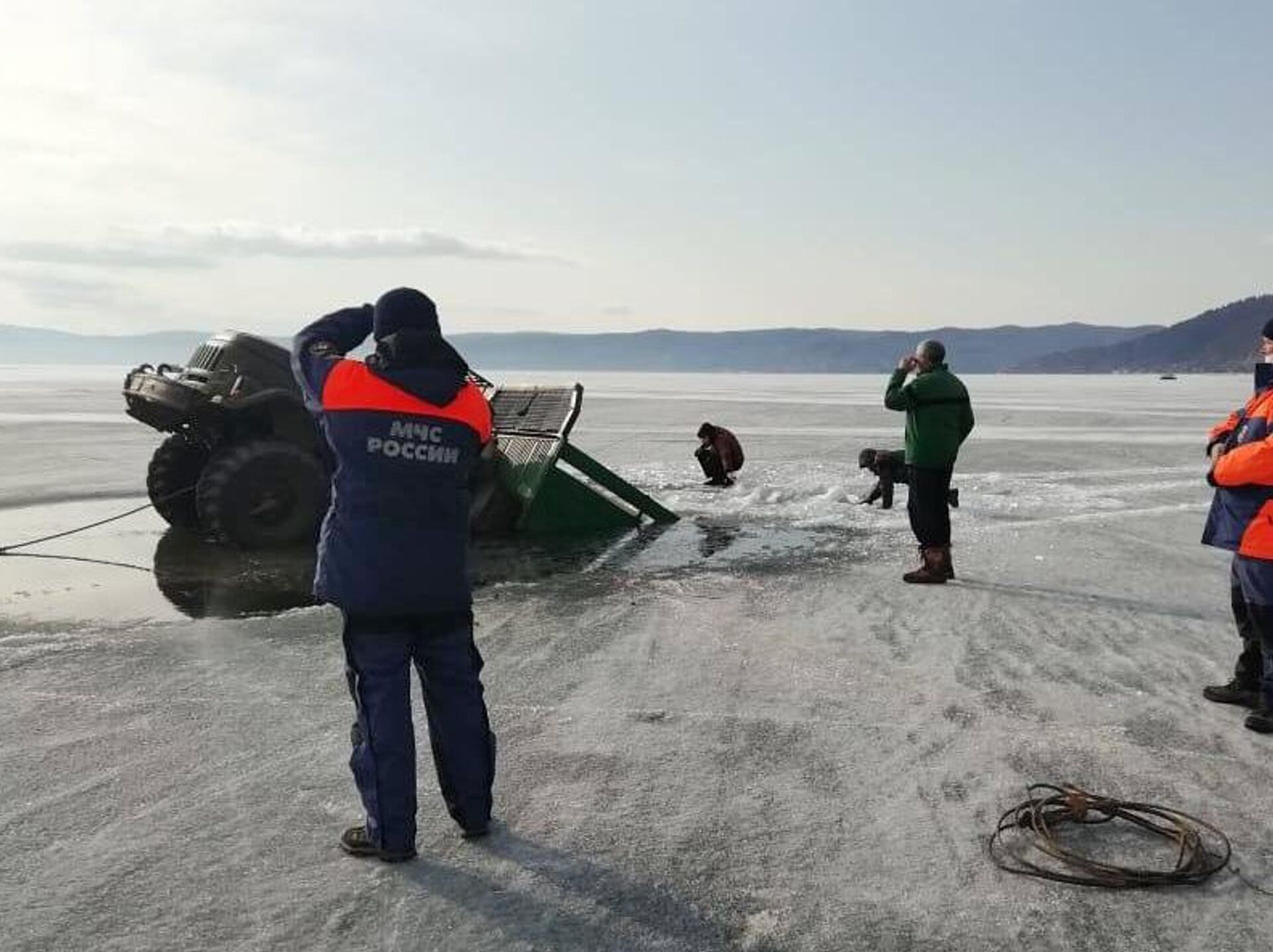 провалился под лед на озере Байкал в пятницу днем, в машине находились китайские туристы и водитель из числа местных жителей.