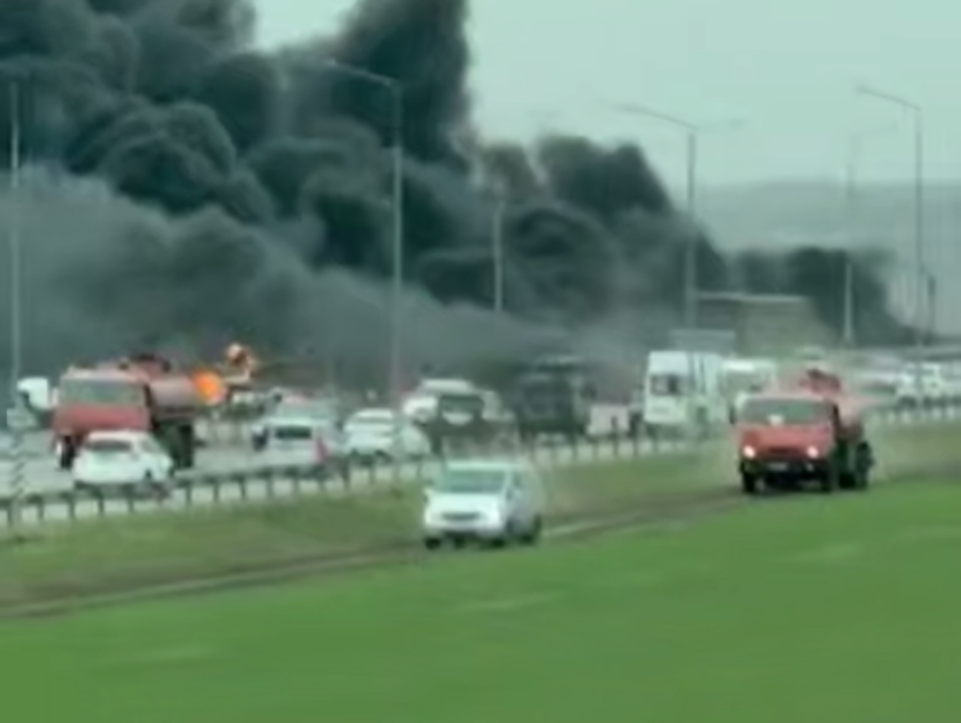 Бензовоз загорелся и взорвался после массовой аварии на трассе Ростов – Таганрог - РИА Новости, 1920, 21.03.2026