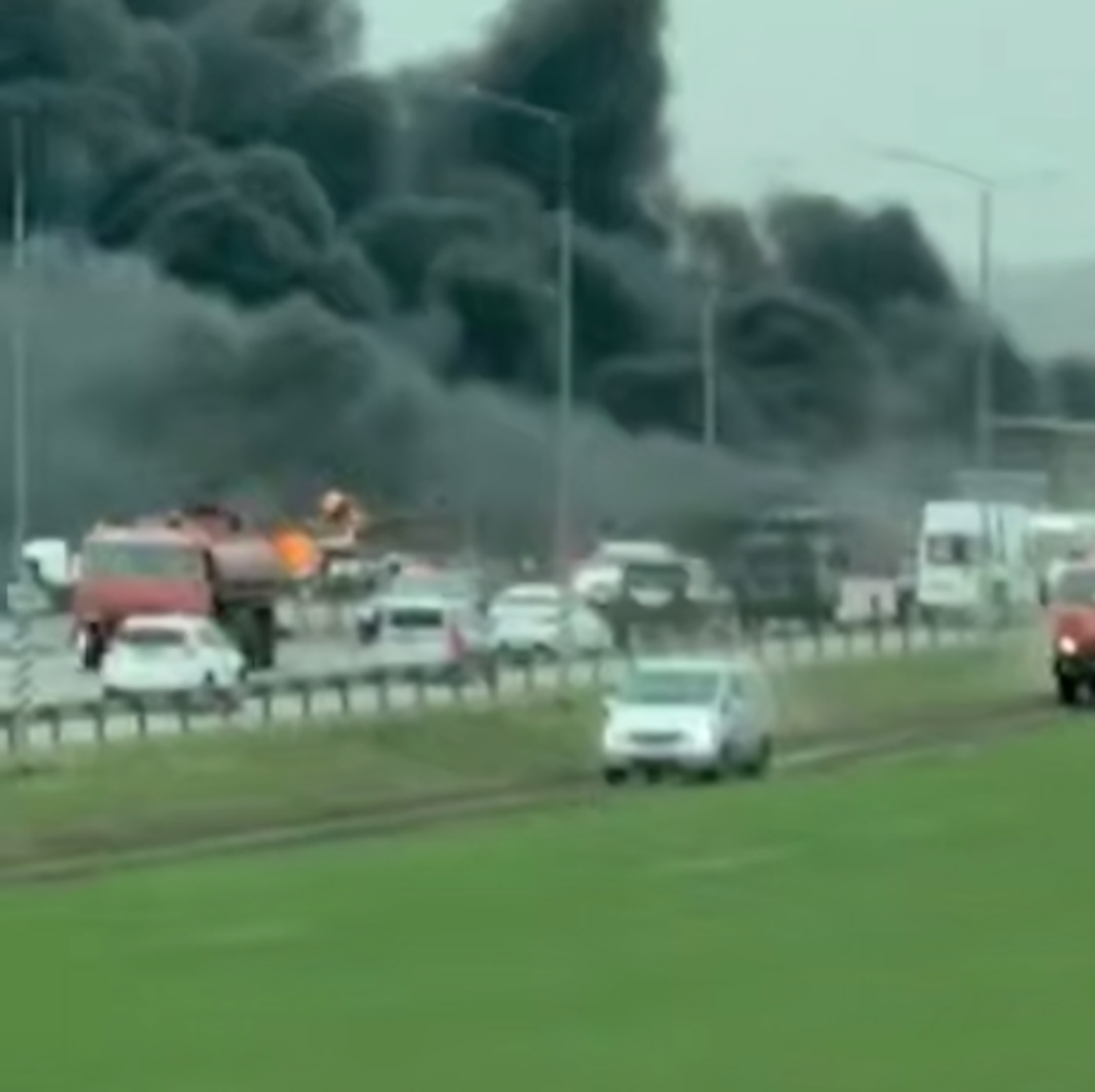 © Фото : Кадр видео из соцсетейБензовоз загорелся и взорвался после массовой аварии на трассе Ростов – Таганрог